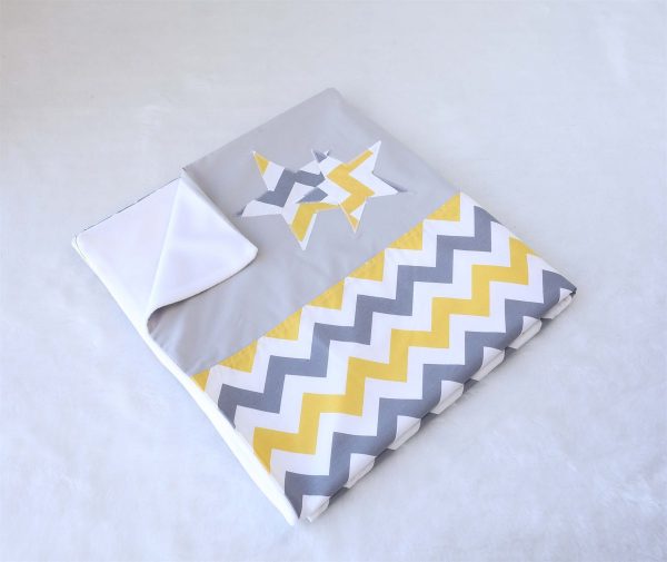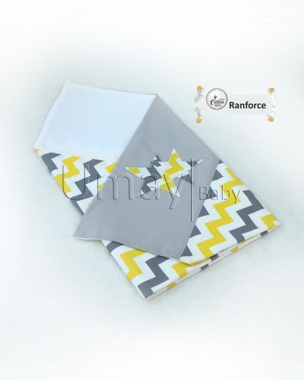 Umay Baby Fleece/Cotton Blanket – Yellow/Grey Zig Zag
