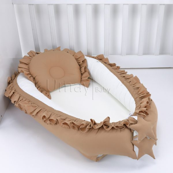Umay Baby Nest & Flat Pillow –Brown/White Ruffle