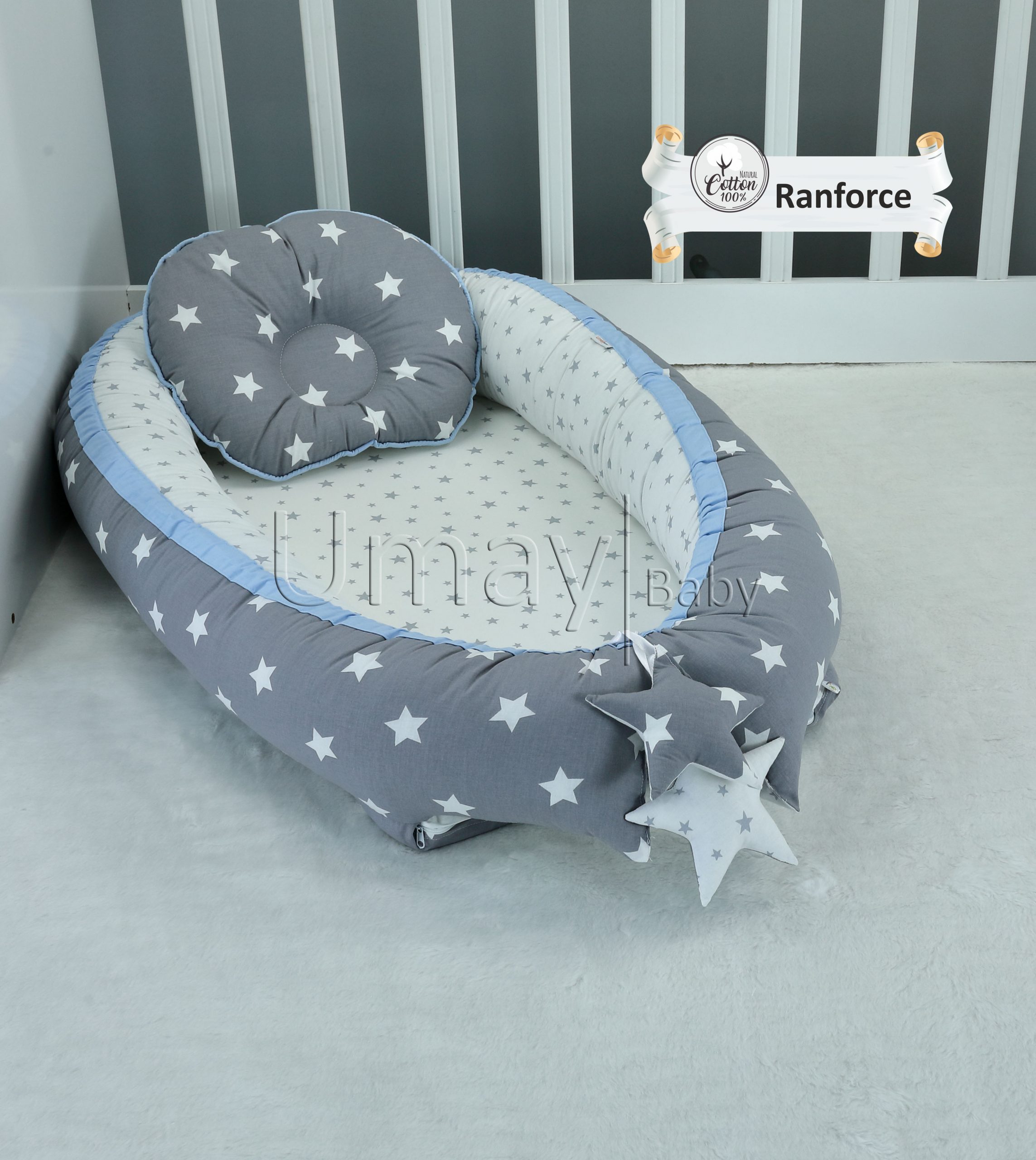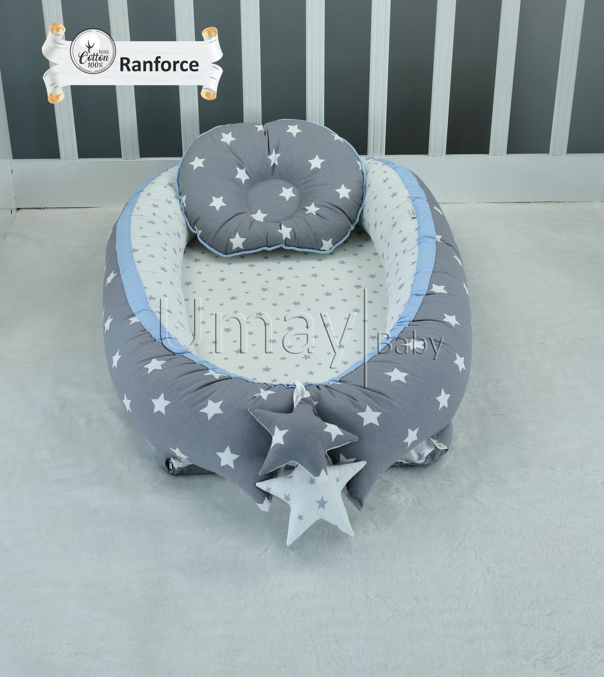 Umay Baby Nest & Flat Pillow Dark Grey Star/Blue