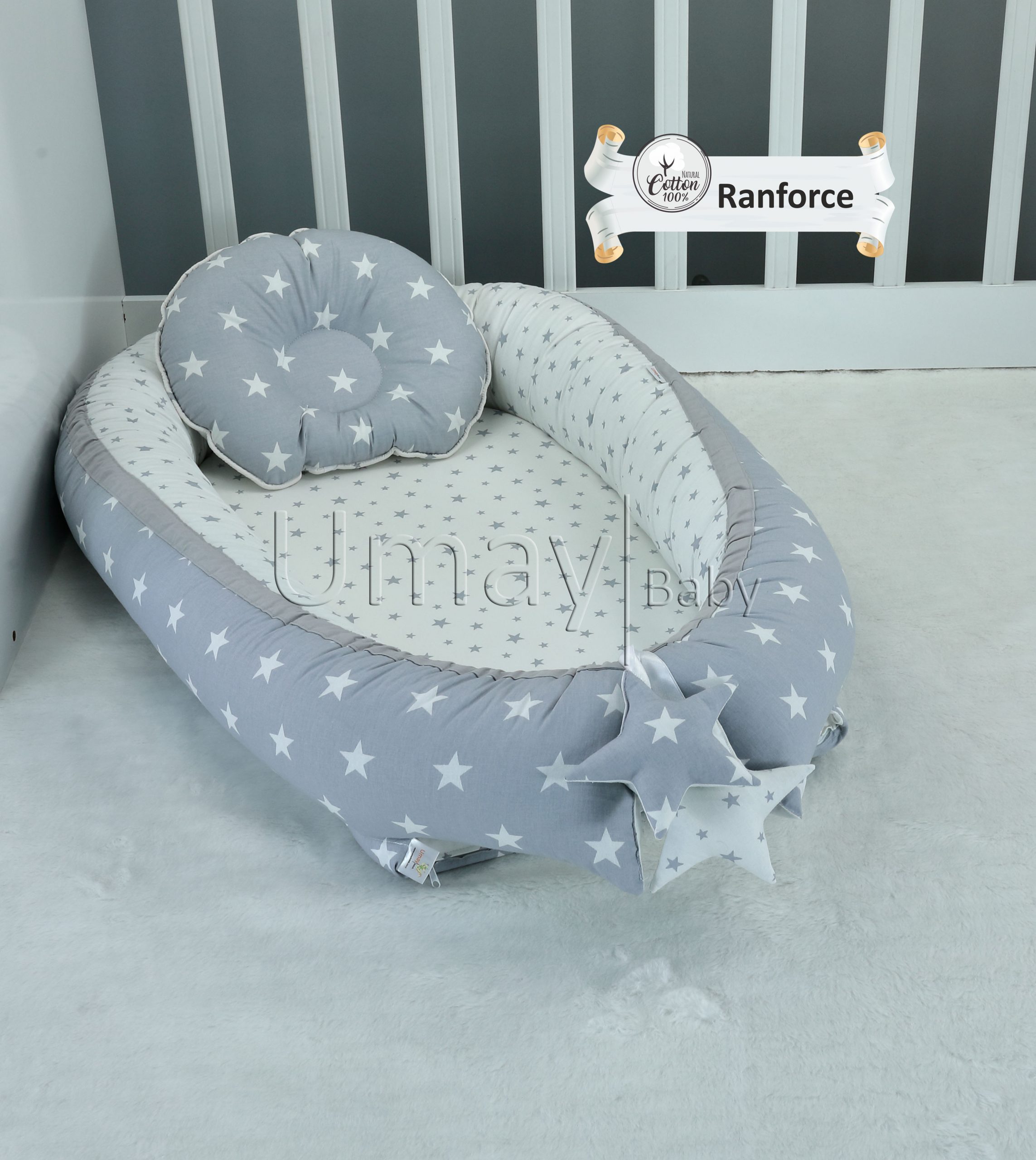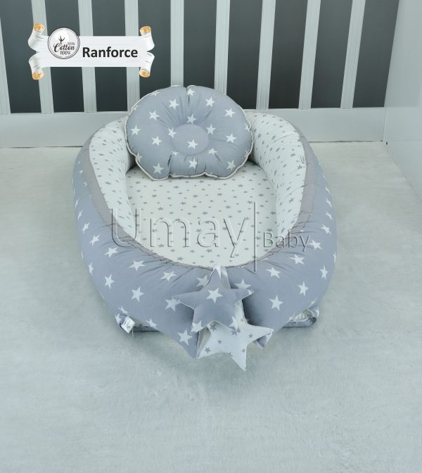 Umay Baby Nest & Flat Pillow – Grey Star