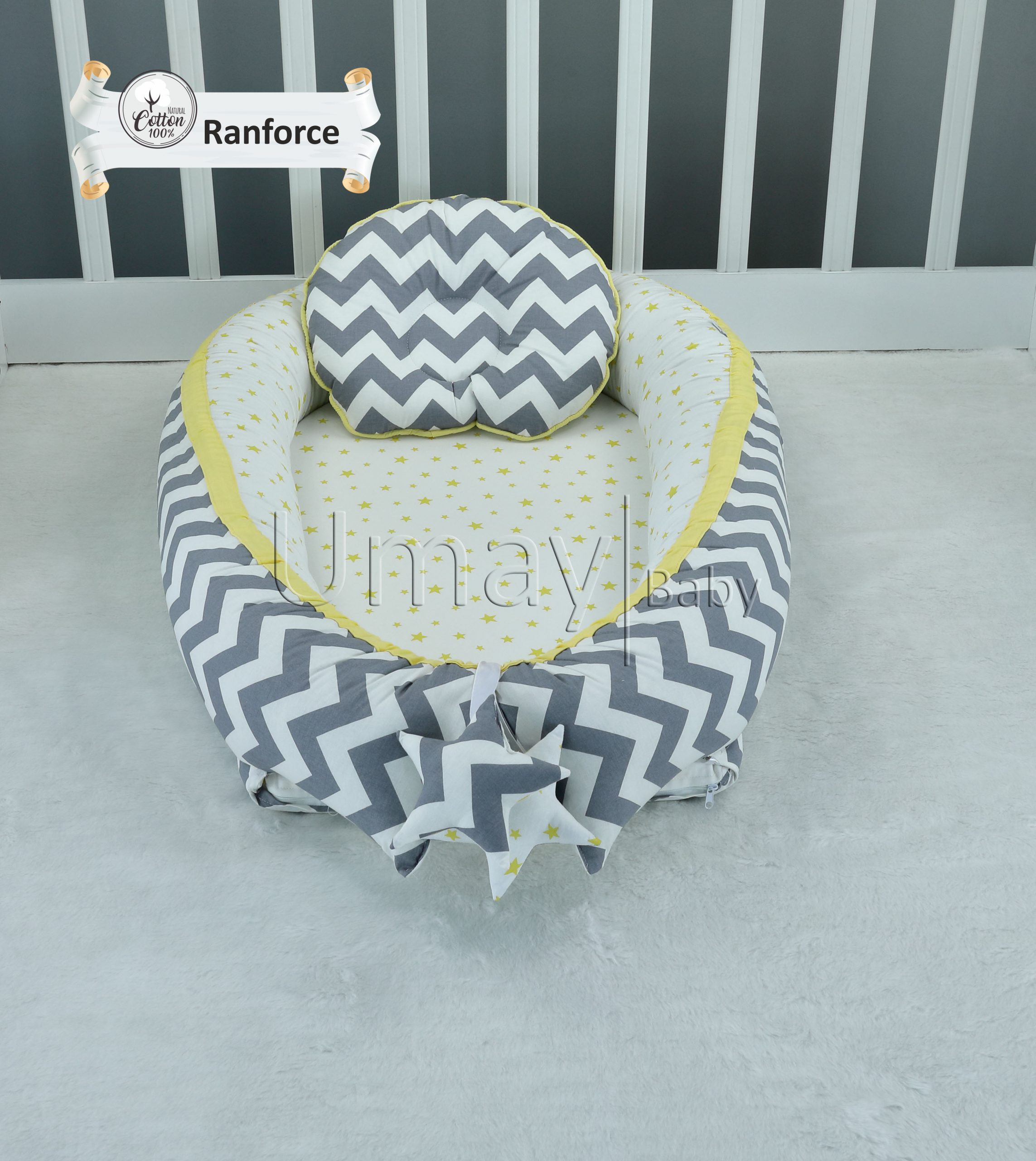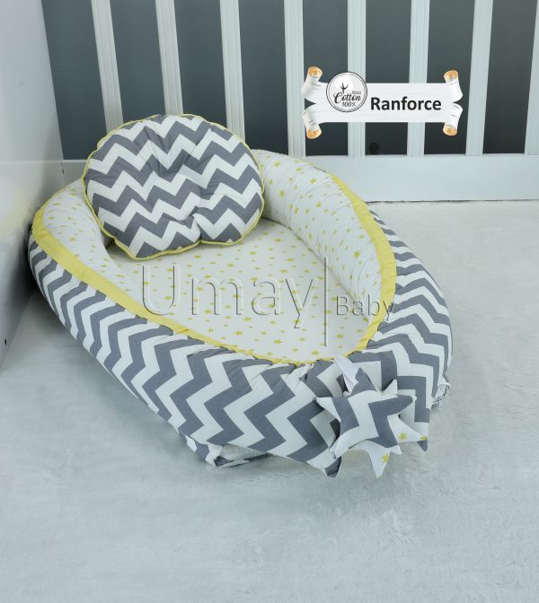 Umay Baby Nest & Flat Pillow -Grey Zig Zag