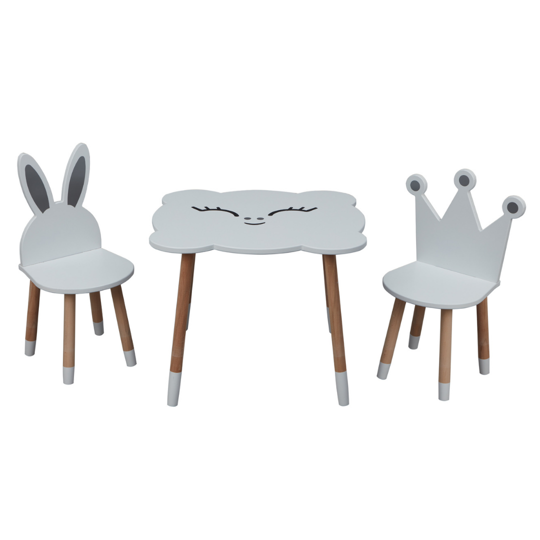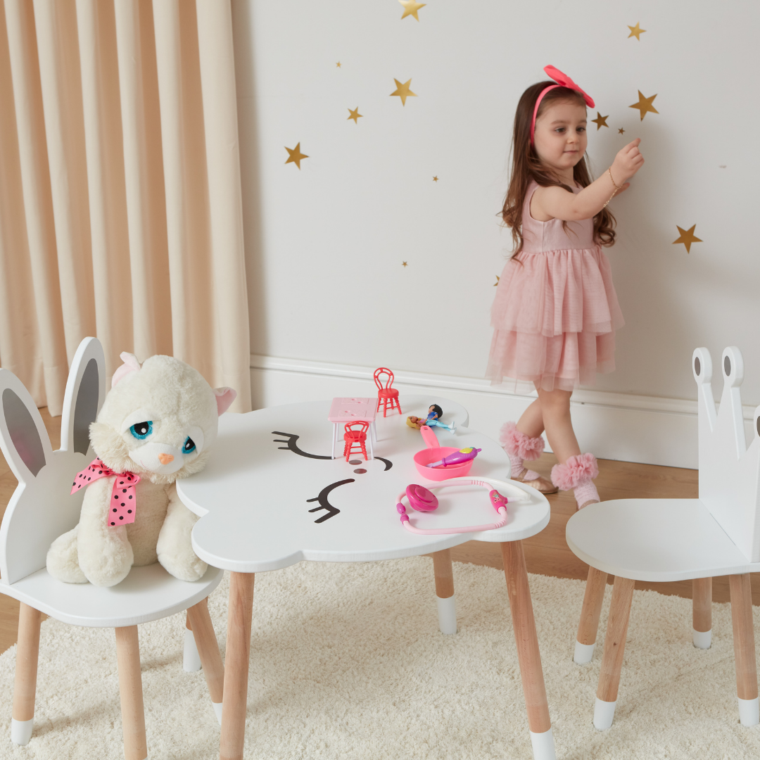 The drawings on the table and chair are in the form of stickers. Available in the package.